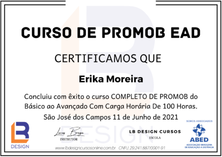 Receba gratuitamente seu certificado valido em todo território nacional ao concluir o nosso curso de promob EAD.